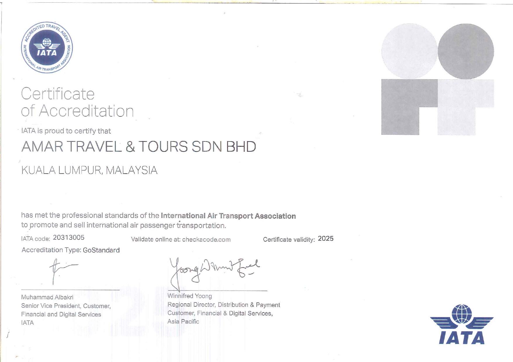 Kami diiktiraf secara rasmi oleh IATA, memastikan perkhidmatan pelancongan yang selamat, dipercayai dan diiktiraf di peringkat global.