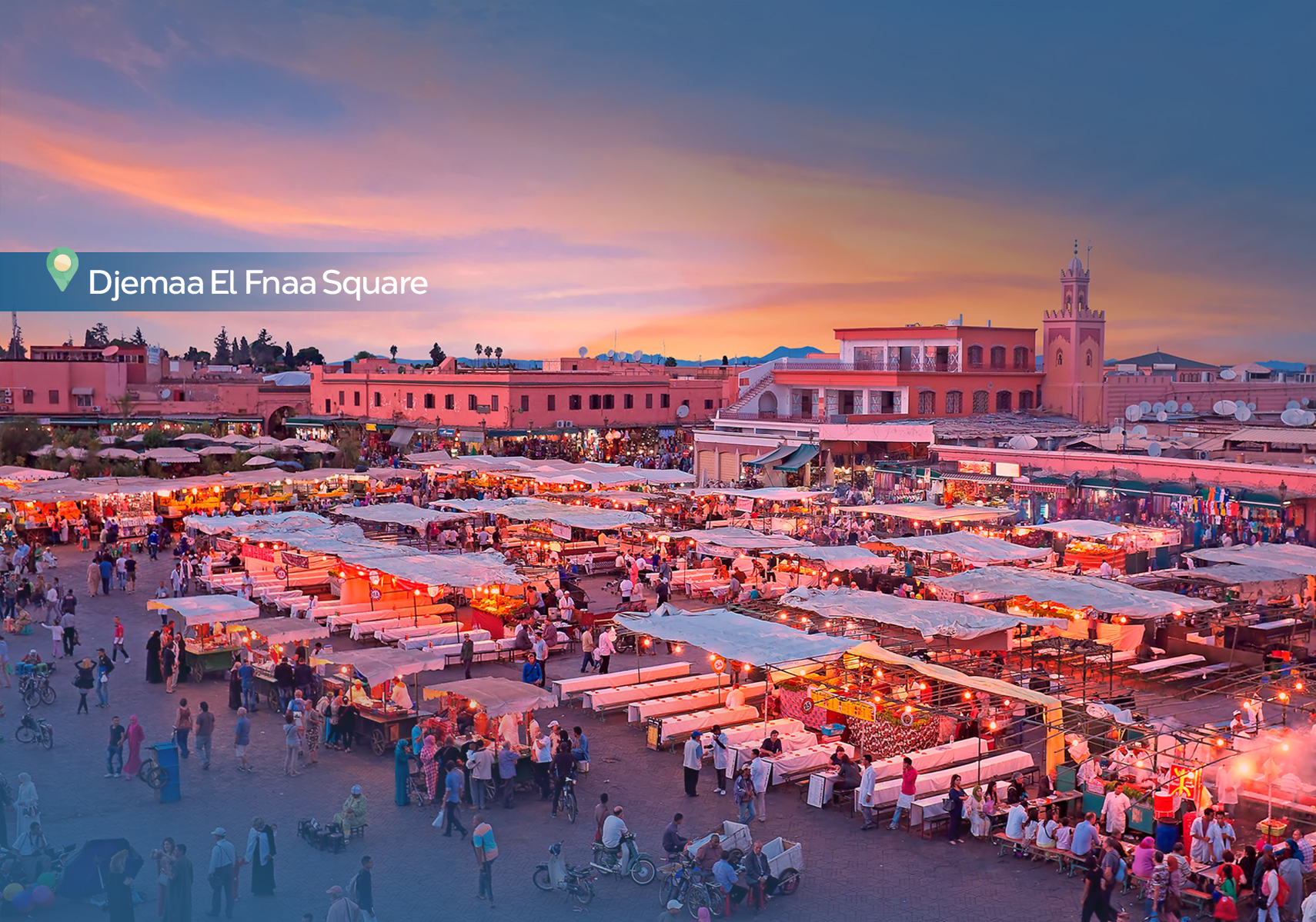 ● Begin the city tour by Visiting Hassan II Mosque for a photo stop and prayers. Then, head to Marrakesh and visit Koutoubia Mosque for prayers. Then, proceed with the Guided Tour of Marrakesh.